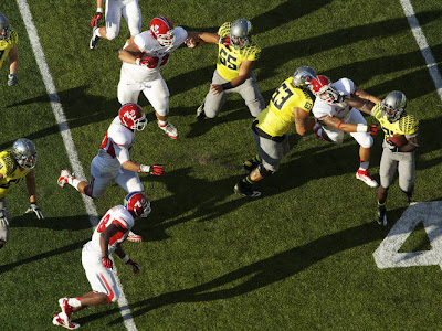 It is for this that we thank Rich Rodriguez, Chip Kelly, Urban Meyer, and all the other coaches who are revolutionizing football. This will be the fourth consecutive Duck game without seeing a huddle. And this may be the fastest paced spread team to play Oregon yet. Bottom line, its going to be an entertaining game.